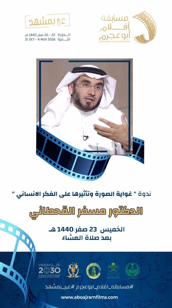 وأشار الحسن إلى أن الاهتمام بصناعة الأفلام وتعزيز ثقافة الصورة والشاشة برفع الوعي لدى المجتمع وتطوير المواهب، وتحقيق حراك ثقافي على مستوى المملكة مطلقاً من أبو عجرم، وأكد على أن اللجنة المنظمة للمسابقة حرصت على استقطاب عدد من المفكرين السعوديين لتحقيق الهدف المنشود من المسابقة، مرحباً بهم في أبو عجرم، وقدم الدعوة للجميع للحضور الأمسيات.
