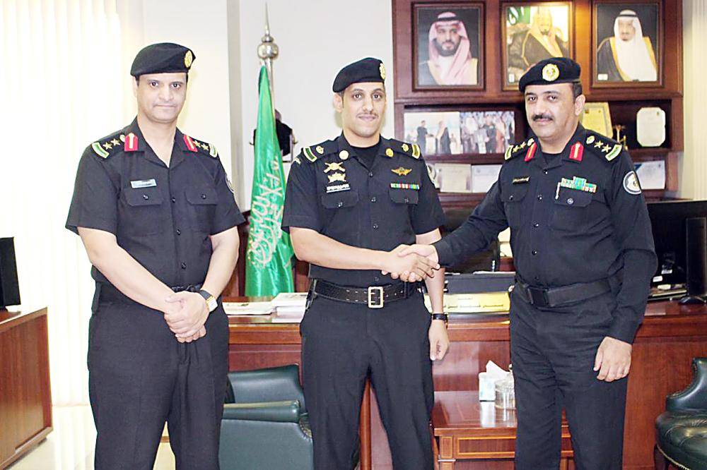 قلد مدير إدارة دوريات الأمن في جدة العقيد بندر بن فهد الشريف، الرائد مسعد بن سعد الحربي رتبته الجديدة.