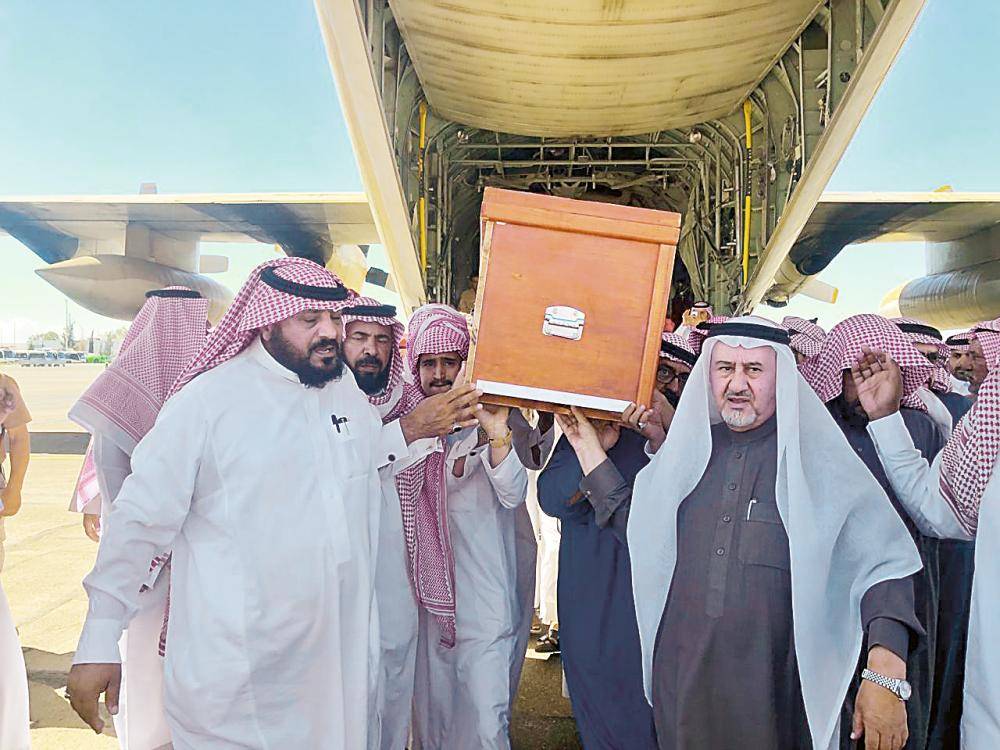 جثمان الشهيد لدى وصوله مطار الباحة. (عكاظ)