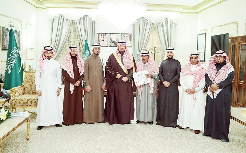 الأمير فيصل بن خالد مستقبلا منسوبي «عكاظ» في عرعر.