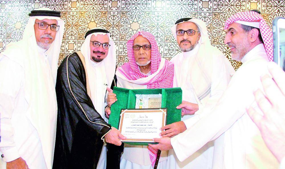 السليم مكرما أحد رواد التعليم في المدينة بالديوانية. (عكاظ)