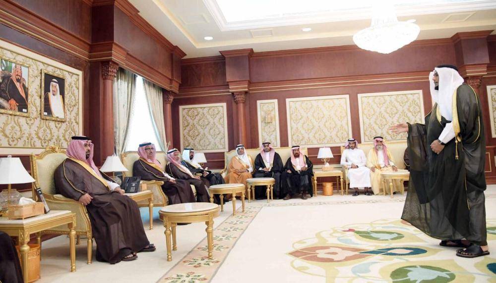 استقبل نائب أمير منطقة جازان الأمير محمد بن عبدالعزيز بن محمد بن عبدالعزيز بمكتبه بالإمارة اليوم (الاثنين)، وفدا من مشايخ القبائل والأعيان بالمنطقة، الذين قدموا للسلام عليه وتقديم التهنئة بمناسبة الذكرى البيعة الرابعة لتولي خادم الحرمين الشريفين الملك سلمان بن عبدالعزيز آل سعود مقاليد الحكم.