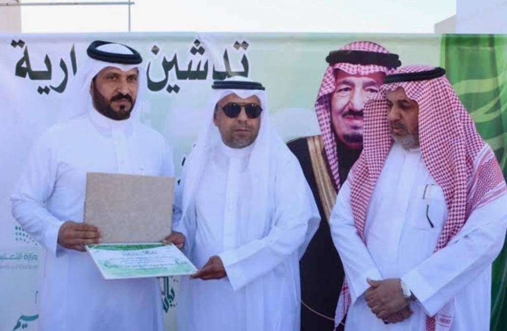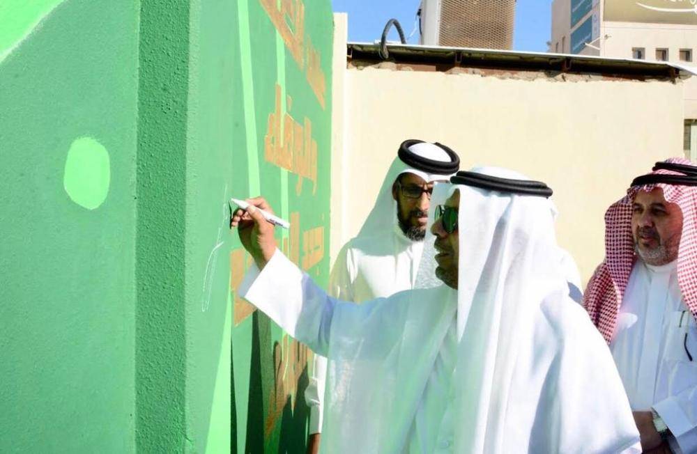 دشن مدير مكتب التعليم بالنسيم الدكتور سعود بن حميد السلمي جدارية «لك يا سلمان» بمناسبة ذكرى بيعة خادم الحرمين الشريفين الرابعة والتي تصادف الثالث من ربيع الثاني في متوسطة سعود الفيصل بأنامل طلاب مدارس المكتب وإشراف شعبة التربية الفنية بالمكتب.