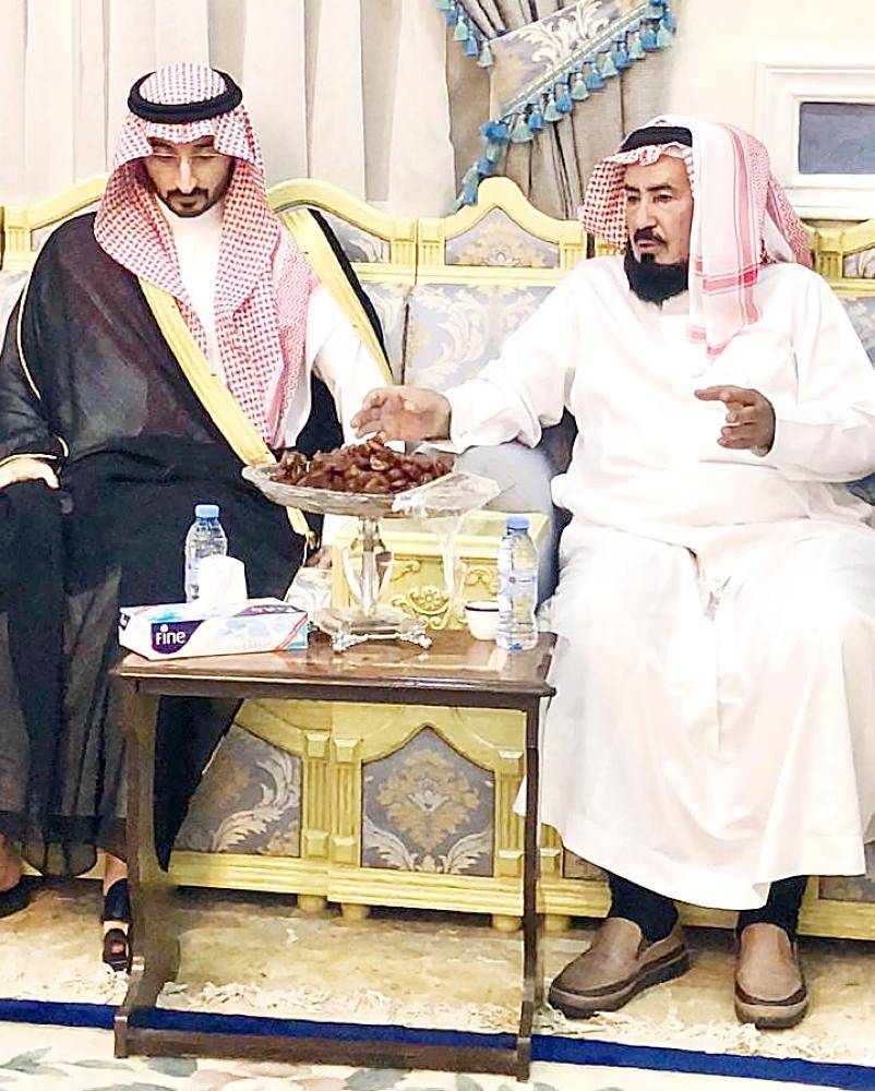 واسى محافظ جدة الأمير مشعل بن ماجد ونائب أمير منطقة مكة المكرمة الأمير عبدالله بن بندر بن عبدالعزيز، الشيخ صنيتان الضيط في وفاة نجله فواز ـ رحمه الله.