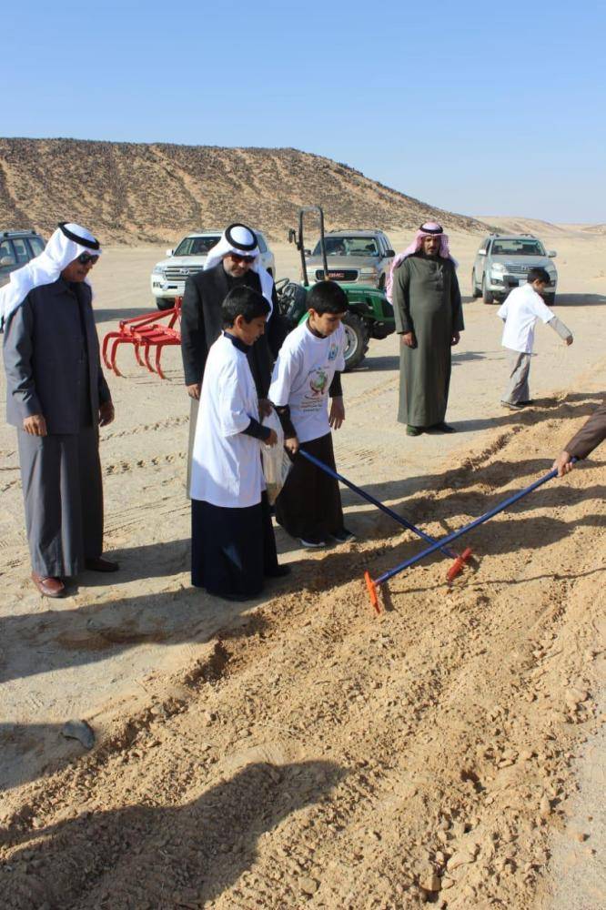 وتم تجهيز الأرض ونثر البذور وتغطيتها بواسطة المحاريث لضمان وجودها بالتربة والاستفادة القصوى من زراعتها، حيث تم نثر (١٠) أنواع من البذور اشتملت على(الفرس، الشيح، الرمث، القيصوم، الرغل، الغضا، الأرطى، العجرم، الضمران، الروثه).