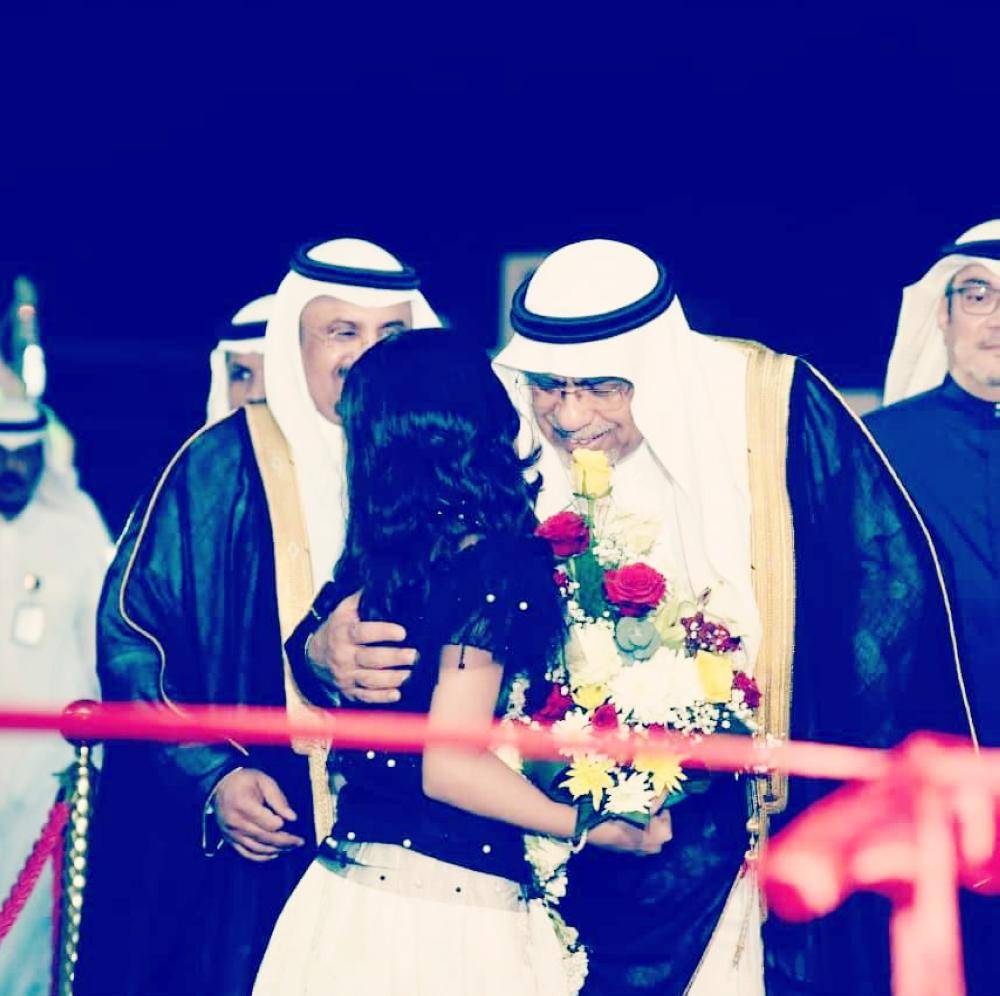 القويحص مصافحا طفلة في المهرجان.