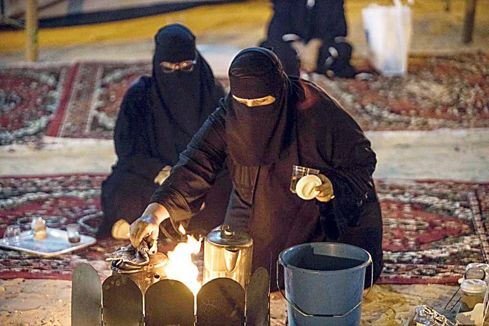 امرأتان تحضّران القهوة في المنافسات. (عكاظ)