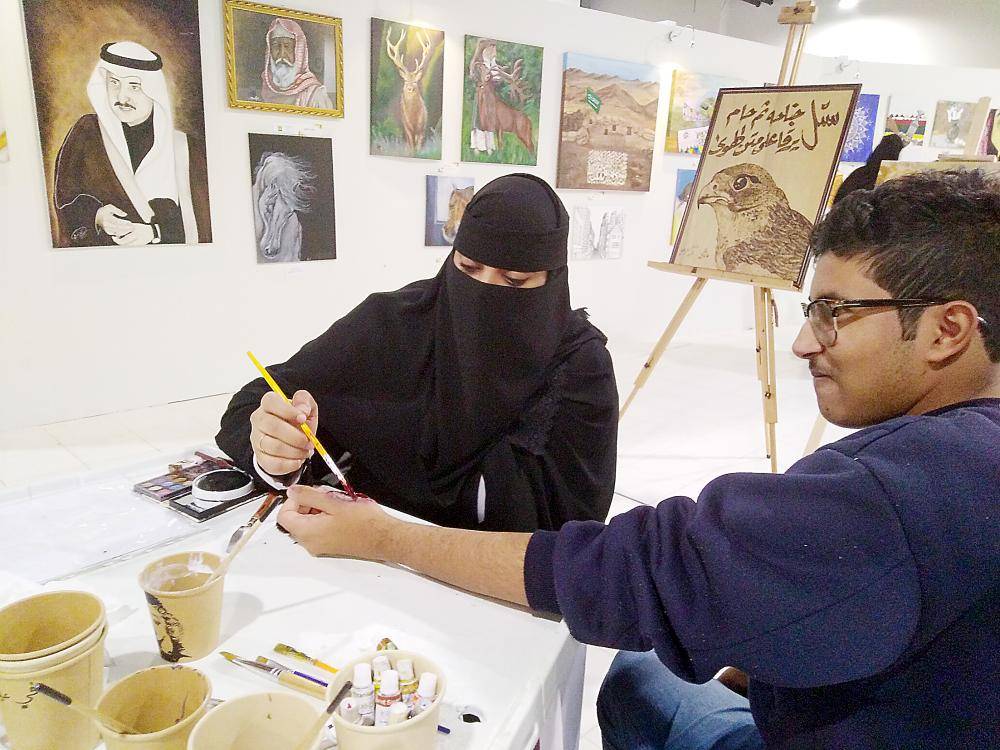 وطالبت بإيجاد جهة تتبنى مواهبهم وتصقل قدراتهم، المتمثلة في فعالية إظهار المكياج السينمائي.