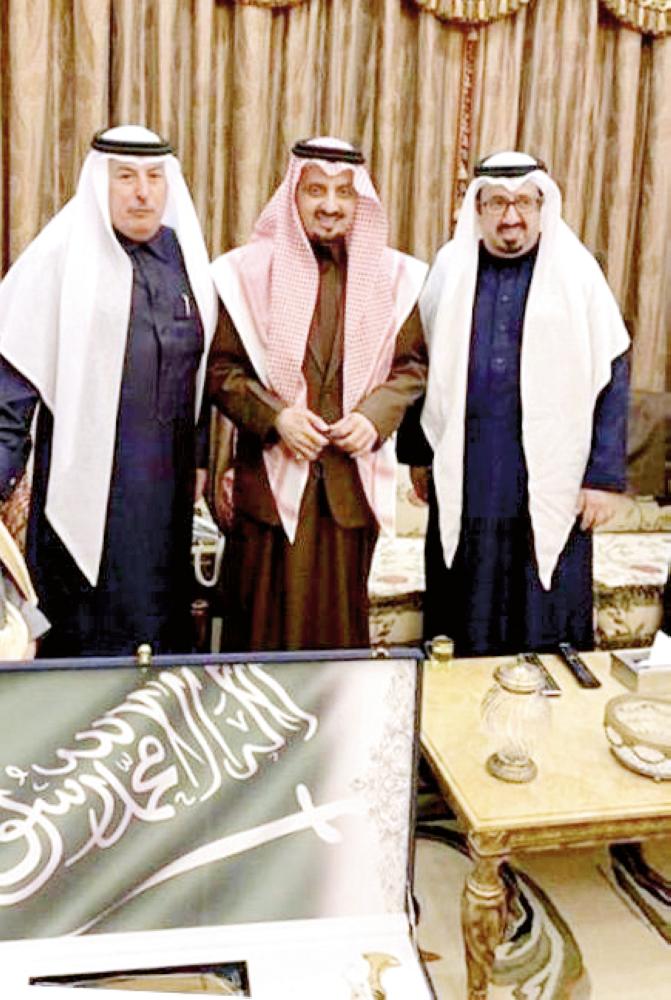 الأمير فيصل بن خالد يتوسط المتحمي والأزهري خلال الزيارة.