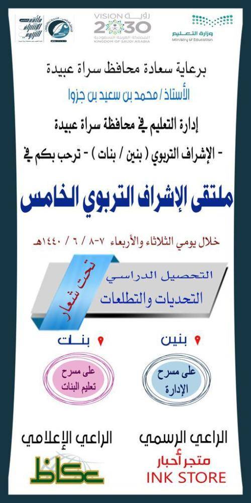 من جانبه، أوضح مدير الإشراف التربوي عبدالله آل مصلح، أن هذا الملتقى الإشرافي الخامس يعد إحدى الخطوات التطويرية المتعاقبة، التي تقوم بها إدارة الإشراف التربوي في محافظة سراة عبيدة، مشيرا إلى أنها أسست لمبدأ الشراكة المجتمعية والإعلامية والعلمية الإثرائية مع رجال الأعمال والمؤسسات التجارية والإعلامية والجامعات ومراكز البحث العلمي، مضيفا أن أعمال التخطيط والاستعداد لهذا الملتقى انطلقت منذ وقت مبكر حرصا على أن تتواصل النجاحات والثمرات التي تم تحقيقها في السنوات السابقة، حيث كانت المحصلة متنوعة من خلال عرض العديد من الأوراق العلمية والمبادرات والتجارب والورش التربوية، وبمشاركة نخبة من الأكاديميين والتربويين والباحثين والمشرفين التربويين والمشرفات وقادة وقائدات المدارس، والمعلمين والمعلمات والطلاب والطالبات، لافتا إلى أن الملتقى الحالي قد اتخذ التحصيل الدراسي عنوانا له مواكبة لتوجهات الوزارة وتأكيدها على تحسين فرص التعلم ومخرجاته، ورفع مستوى التحصيل الدراسي هو من أهم الركائز التي تسعى الوزارة لتحقيقها والعمل عليها.