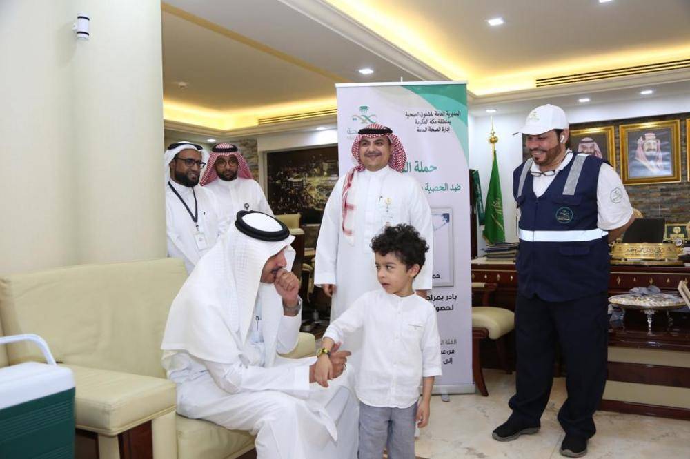 دشنت صحة منطقة مكة المكرمة صباح اليوم (الأحد)، بمكتب المدير العام للشؤون الصحية بالعاصمة المقدسة الدكتور وائل مطير، الحملة التكميلية للتحصين ضد الحصبة (بالجرعة الإضافية) للأطفال، بحضور المدير العام للحج والعمرة بوزارة الصحة ومساعد المدير العام للصحة العامة بصحة منطقة مكة المكرمة الدكتور سري عسيري.