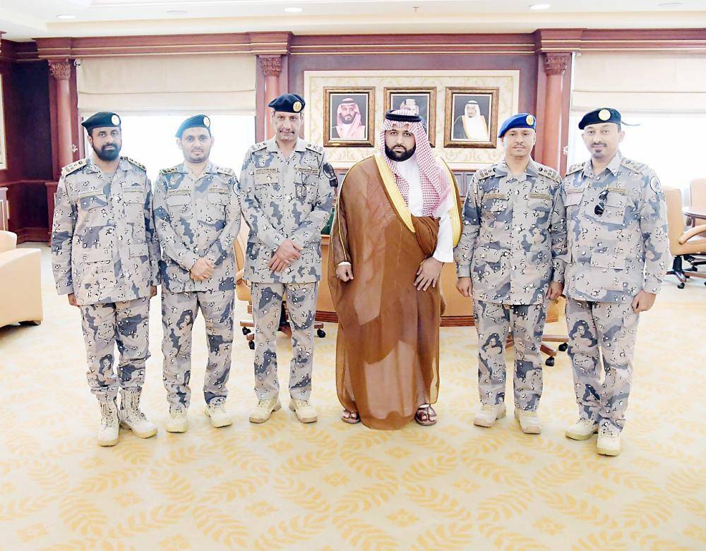 أمير جازان بالنيابة مع الضباط الذين تمت ترقيتهم.