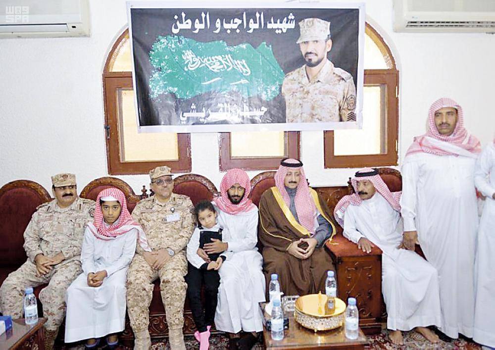 الأمير بدر بن محمد مواسياً ذوي الشهيد القريشي.