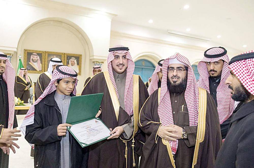 كرَّم أمير منطقة الجوف الأمير فيصل بن نواف بن عبدالعزيز أمس، الطالب سليمان فهد علي الخالدي، من ذوي الاحتياجات الخاصة، الحاصل على المركز الأول في المستوى الـ4 للفرع الثاني في مسابقة الأمير سلطان بن سلمان لحفظ القرآن الكريم، وذلك من بين 44 متسابقا من داخل المملكة وخارجها.