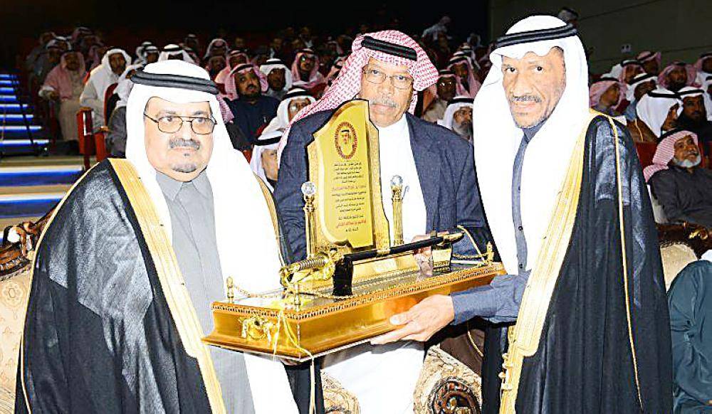 السديري يتسلم هدية من تعليم العُلا لحضور تكريم القاضي. (عكاظ)