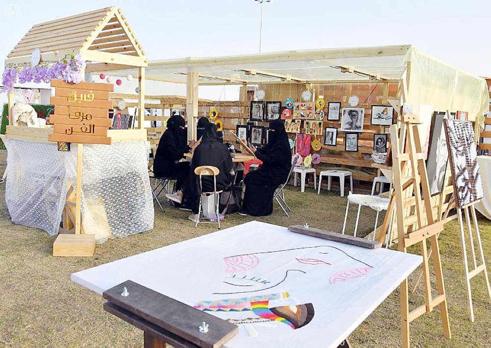 فنانات تشكيليات في المهرجان. (عكاظ)