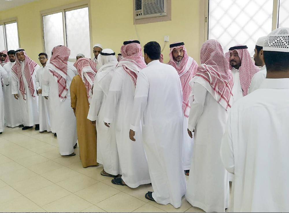 ذوو الفقيدة يتقبلون العزاء في المقبرة أمس.