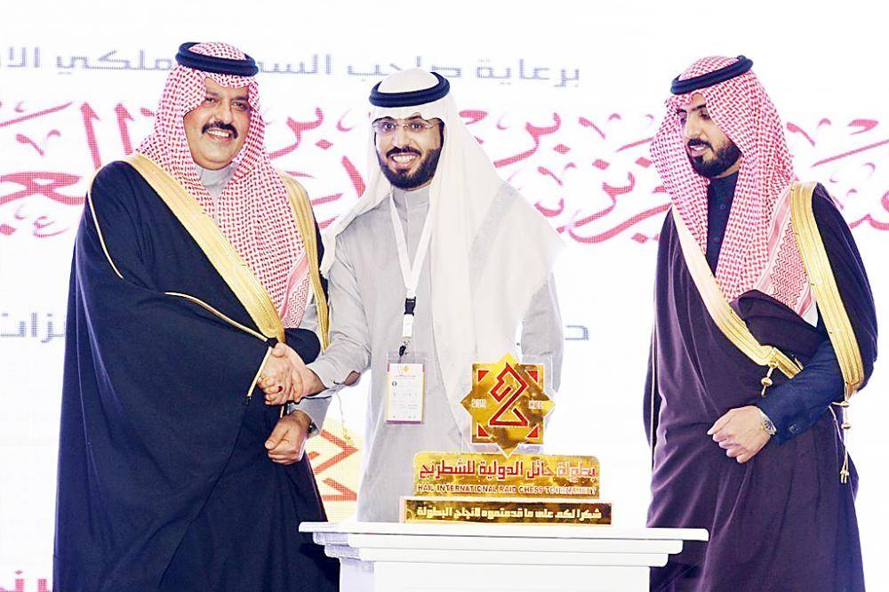 كرم أمير منطقة حائل الأمير عبدالعزيز بن سعد بن عبدالعزيز، «عكاظ» وSaudi Gazette كشركاء صحفيين لبطولة حائل الدولية للشطرنج 2019، التي نظمتها الغرفة التجارية في حائل، بالتعاون مع الاتحاد السعودي للشطرنج، بحضور نائب أمير منطقة حائل الأمير فيصل بن فهد بن مقرن، ونائب رئيس مجلس الغرف السعودية رئيس غرفة حائل عبدالله العديم، ورئيس الاتحاد السعودي للشطرنج رامي الطاسان.