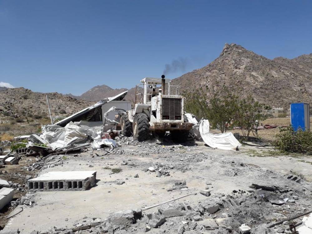 وبلغت مساحة التعديات المزالة 10 آلاف متر مربع من الأرضي الحكومية بقرية المخاضة بمركز الشفا السياحي، وتعاملت الأمانة (وكالة الخدمات – البلديات الفرعية) مع التعديات القائمة بالإزالة الفورية بمشاركة فعالة من رئيس ومراقبي الفرع ولجنة التعديات وبدعم من قوة أمنية، وتم إدراج الموقع ضمن قائمة المواقع التي ستخضع لرقابة يومية مباشرة، لضمان عدم عودة الإحدثات المخالفة إليها مره أخرى.