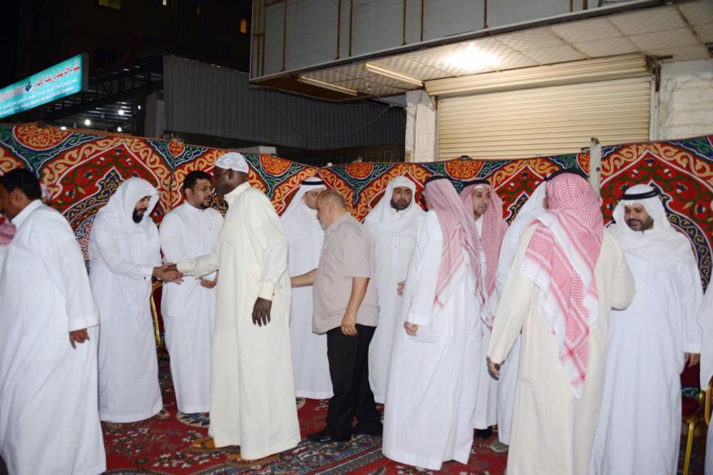 ذوو الفقيد يستقبلون المعزين أمس. (تصوير: عبدالسلام السلمي)