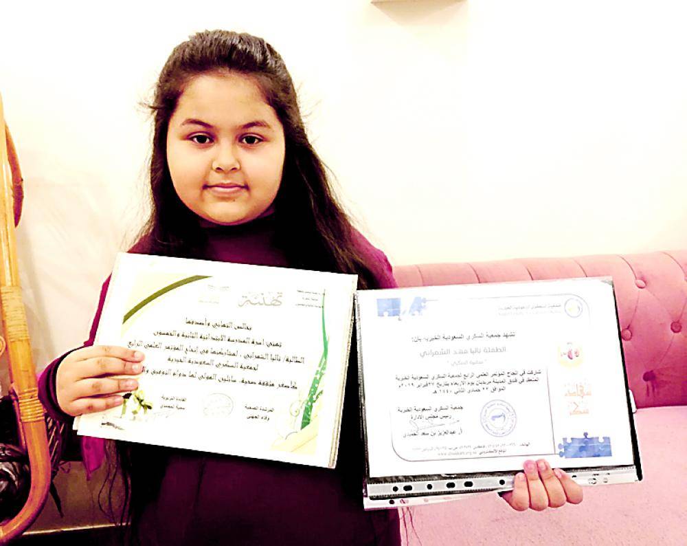الطالبة تاليا الشمراني عقب تكريمها.