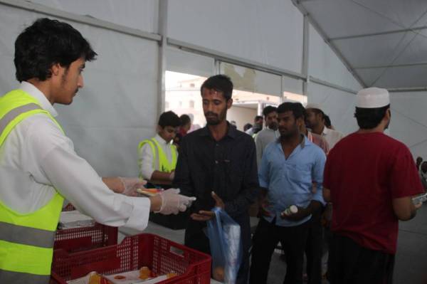 وأضاف الصافي، «يصل عدد المتطوعين إلى 110 متطوع يومياً في ثلاثة مخيمات، يوزعون أكثر من 4100 وجبة يومية، حيث يكون في مخيم جامع الفرقان يصل إلى 50 متطوع، ومخيم مسجد هيفاء الصقير بحي الفرسان إلى 35 متطوع، بالإضافة إلى 25 متطوع في مخيم القريان بصناعية دلة».
