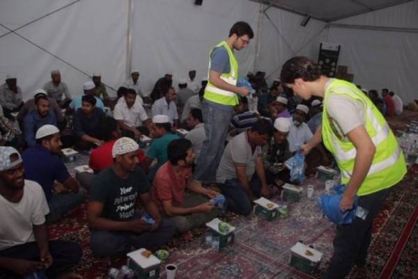 وينتشر الشباب في بادرة تطوعية بين المخيمات الرمضانية ليشاركوا في تهيئة المكان وإعداد سفرة الصائمين، بالإضافة إلى تنظيم الازدحام، والوقوف على خدمة الصائمين حتى يتناولوا إفطارهم وتبتل عروقهم، وذلك تعزيزًا لقيم الإسلام التي تؤكد على روح التعاون بين أفراد المجتمع.