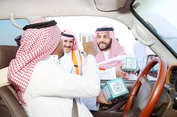 وقدم الأمير فيصل بن فهد وجبات الإفطار للمواطنين والمقيمين، متحدثاً عن أهمية التقيد بالأنظمة المرورية وتعزيز جهود التوعية الهادفة لسلامة الجميع، حيث يقام هذا المشروع تحت شعار «معاً.. رمضان بلا حوادث».