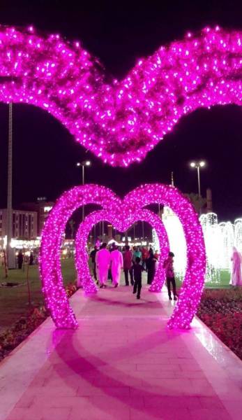 أضاءت 10 قلوب حمراء ليلة الأمس الأول محور النور في الطائف، إيذانا بتدشين أمانة الطائف لمشروعها الجديد (محور النور).