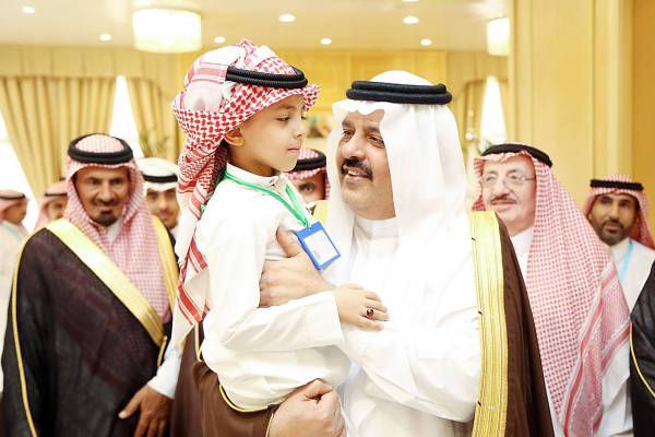 الأمير عبدالعزيز بن سعد يحنو على أحد أبناء الشهداء.