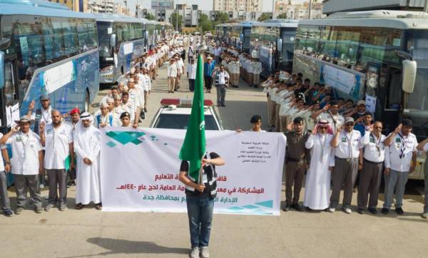 برعاية ومتابعة من مدير عام التعليم بجدة المكلف صديق خوجة، توجه 600 كشاف وقائد كشفي إلى المشاعر المقدسة في قافلة كشافة وزارة التعليم مساء أمس (الخميس)، بعد أن أتموا برنامجهم التدريبي في المعسكر الإعدادي للفرق المشاركة من إدارات التعليم من مدن ومحافظات المملكة في معسكرات خدمة ضيوف الرحمن في الحج، الذي نفذته وكالة الوزارة للتعليم العام واستضافته الإدارة العامة للتعليم بمحافظة جدة ممثلة في النشاط الطلابي - النشاط الكشفي.