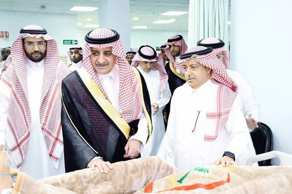 وكان في استقبال أمير تبوك لدى وصوله المستشفى مدير عام الشؤون الصحية بالمنطقة الدكتور غرم الله الغامدي وأبناء الشيخ سداد الفاخري.