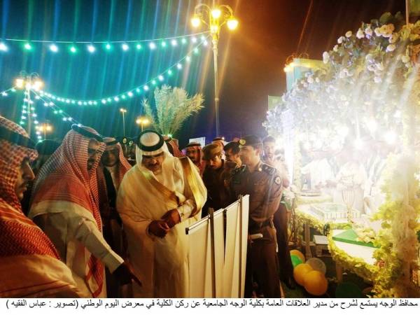 رعى محافظ الوجه المهندس علي بن عبدالرحمن التميمي احتفالات المحافظة التي نظمتها بلدية الوجه، بإشراف رئيس البلدية المهندس محمود بن عبدالله العطوي، وحضور رؤساء الدوائر الحكومية العسكرية والمدنية وجمع غفير من المواطنين والمقيمين.
