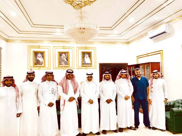 الحازمي متوسطا المشاركين في مجموعة الطلعة التطوعية.