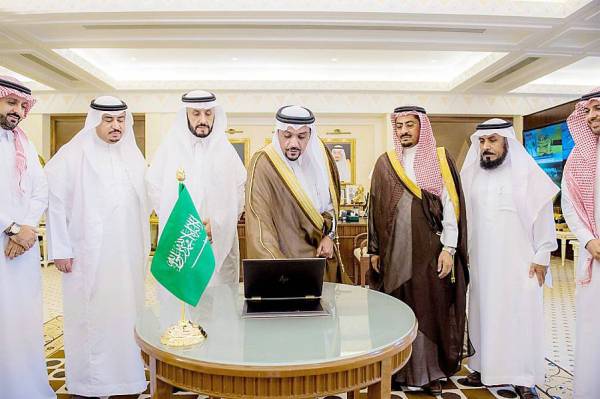 الأمير فيصل بن مشعل مدشنا الموقع الخاص بجائزة الشباب العصامي. (عكاظ)