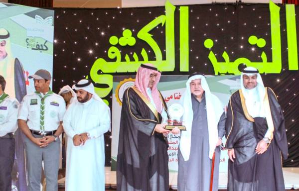 كرم وكيل إمارة منطقة مكة المكرمة الدكتور هشام الفالح، قائد متوسطة ابن خلدون في مكة المكرمة سابقاً المطوف فؤاد محمد أمين كاتب، بحضور المدير العام للتعليم بمنطقة مكة المكرمة الدكتور أحمد الزائدي خلال الحفل الختامي لتكريم الفائزين والجهات المساهمة في دعم برنامج منافسات التميز الكشفي، الذي اختتم أخيراً بمكة المكرمة بمشاركة 120 كشافاً وقائداً من مختلف محافظات ومناطق الوطن الغالي. وتسلم كاتب درعاً من الدكتور هشام الفالح.
