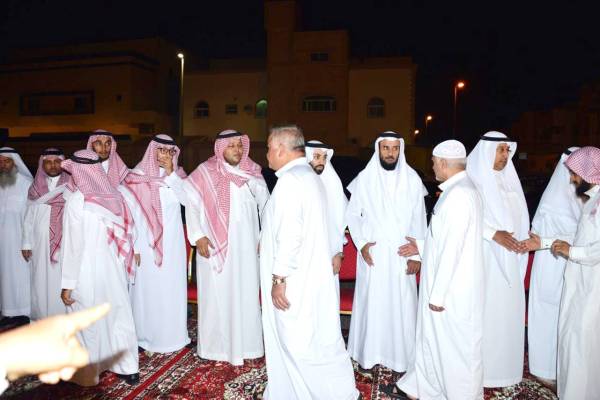 ذوو الفقيد يستقبلون المعزين أمس. (تصوير: عبدالسلام السلمي)
