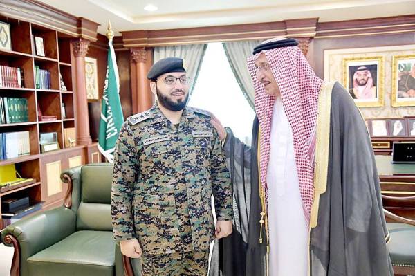 الأمير محمد بن ناصر مقلدا الزهراني رتبته الجديدة.