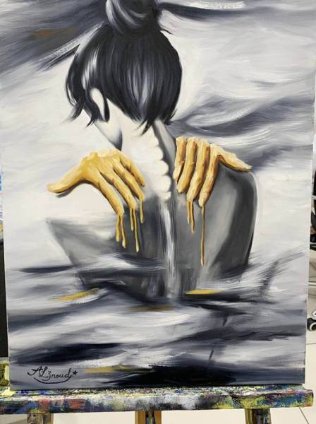تشكيلية سعودية تجسِّد «آلام الظَّهر» في لوحة فنية