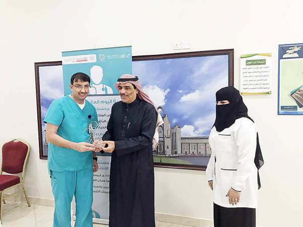 تكريم أحد المشاركين في البرنامج.