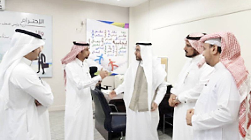 المسعودي ومرافقوه مع قائد المدرسة. (عكاظ)