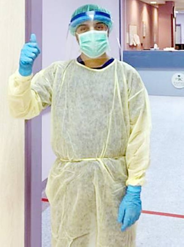 وقرر طبيب الأسنان إبراهيم الحيسوني الذي يعمل في الحناكية مع تفشي فايروس كورونا، أن يتطوع في المدينة المنورة، لافتاً إلى أن الدافع الأكبر الذي حفزه على التطوع هو التزامه بقسم المهنة والواجب الوطني. وذكر أنه في بادئ الأمر كان يتنقل من الحناكية إلى المدينة المنورة يومياً، إلى أن استقر بالسكن في أحد المحاجر الخاصة بالممارسين الصحيين في المدينة المنورة.