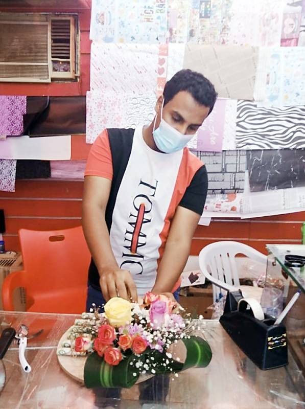 محمد يقوم بتنسيق الورود.