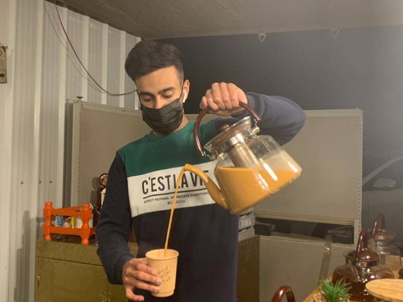 بائع يقدم «الكرك»؛ المكوّن من الشاي والحليب والزنجبيل والهيل، مع انخفاض درجات الحرارة في بريدة.