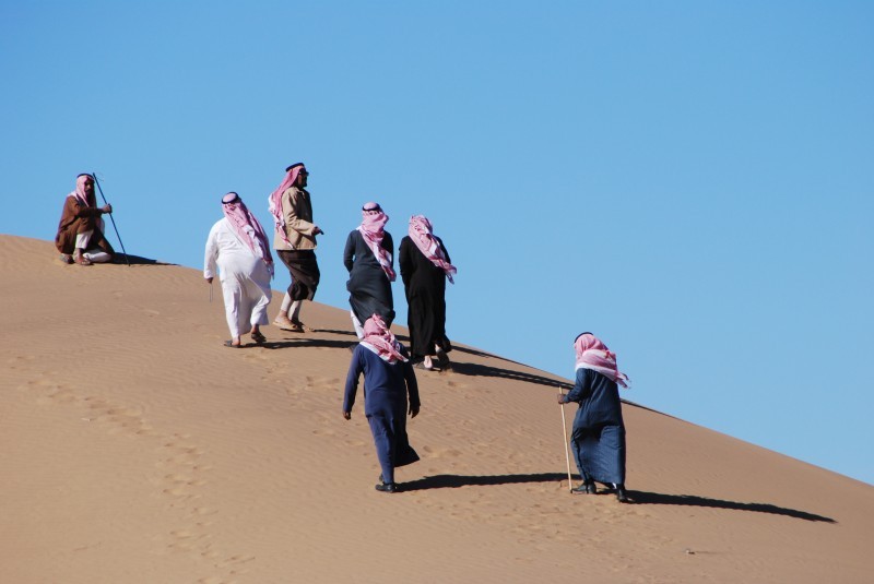 يصعدون بوهن وثقل على رمال تبوك، لا يحملون الأحمال لكنه ثقل الهموم المترسبة بهم، تخلصوا منها لتبدو الحياة أجمل والخطوة أخف.
