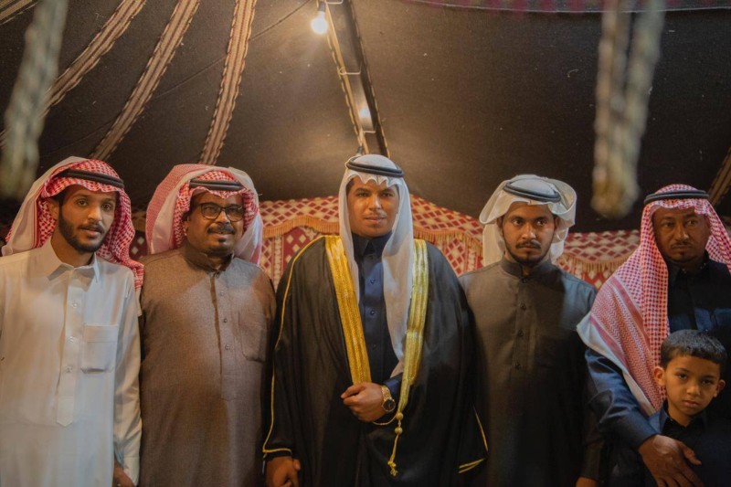 العريس الحربي يتوسط بعض الأقارب.