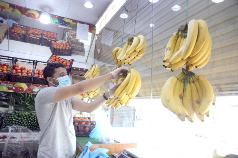 بائع يقدم فاكهة الموز لزبائه في جدة أمس. (تصوير: مديني عسيري).