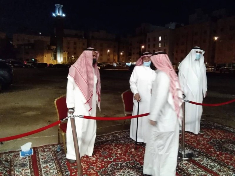 ذوو الفقيد يستقبلون المواسين في فقيدهم.(عكاظ)