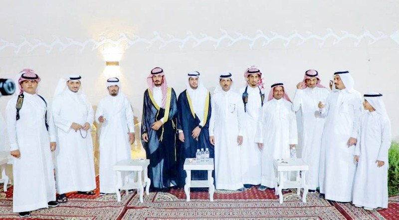 العريس مع أقاربه في الحفل. (عكاظ)