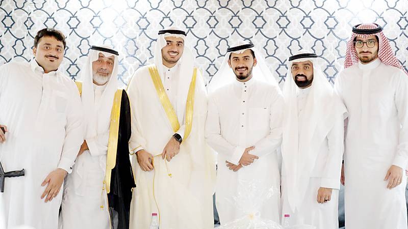 العريس مع بعض الأقارب. (عكاظ)